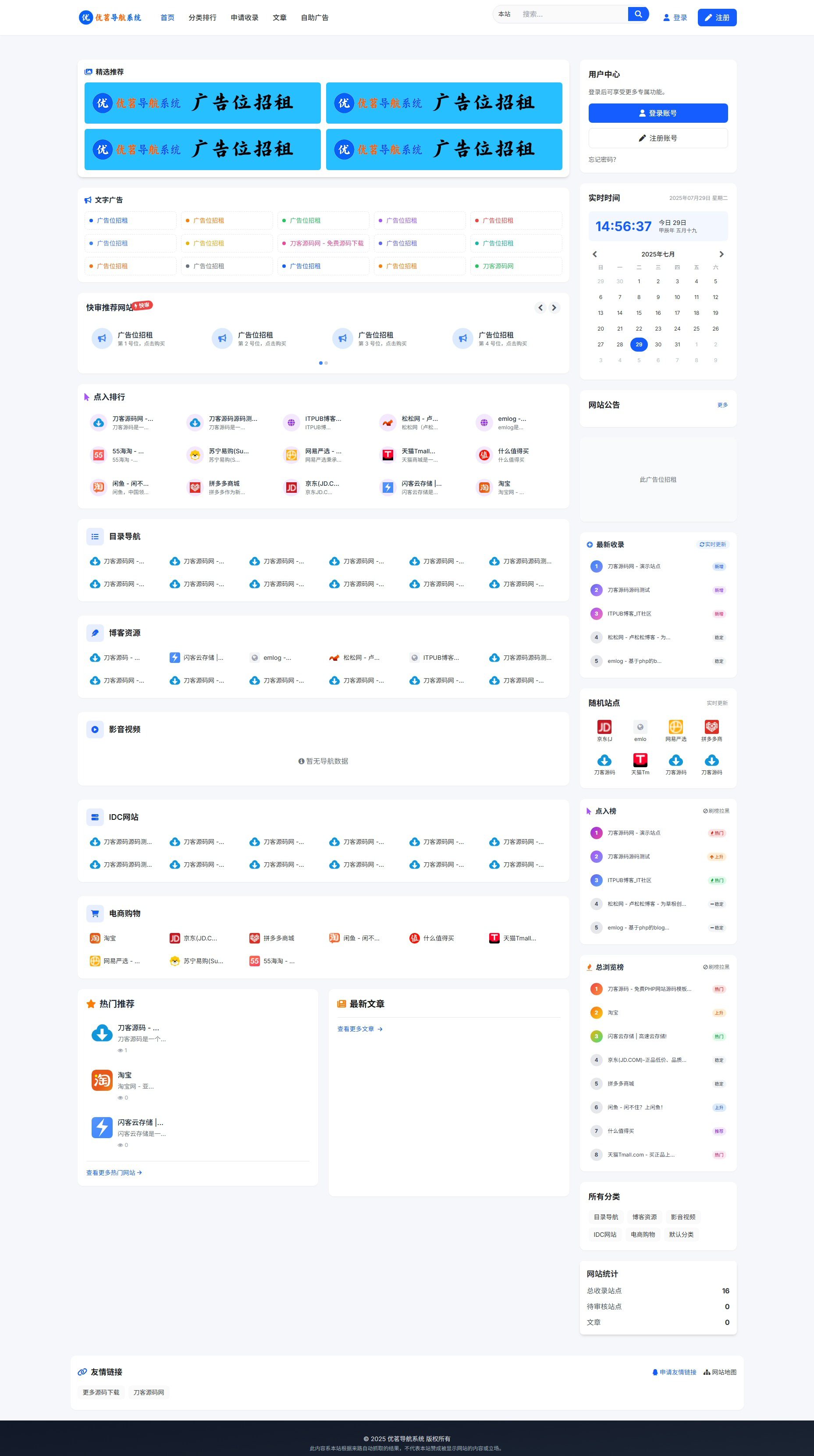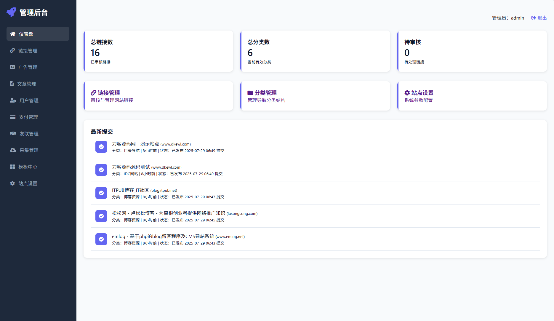 最新优茗导航系统源码/全开源版本/精美UI/带后台/附教程浩旭33天前更新关注私信03937最新优茗导航系统源码/全开源版本/精美UI/带后台/附教程此内容为免费资源,请登录后查看¥0 登录查看免费资源 简介: 最新优茗导航系统源码 全开源版本 精美UI 带后台 附教程 亲测可用 站长搭建简单测试了,正常可用,其他自己下载研究吧 前端截图: 后台截图: 温馨提示:本文最后更新于2025-11-02 23:52:28,某些文章具有时效性,若有错误或网盘失效,请在下方留言或联系站长。 © 版权声明 版权声明 1 本站名称: 浩旭的资源站 2 本站网址:hxblog.lytd1.top 3 本网站的文章部分内容可能来源于网络,仅供大家学习与参考,如有侵权,请联系站长进行删除处理。 4 本站一切资源不代表本站立场,并不代表本站赞同其观点和对其真实性负责。 5 本站一律禁止以任何方式发布或转载任何违法的相关信息,访客发现请向站长举报。 6 本站附件资源、教程等内容如因时效原因失效或不可用,请评论区留言或联系站长及时更新。 THE END源码分享 喜欢就支持一下吧点赞37 分享QQ空间微博QQ好友海报分享复制链接收藏